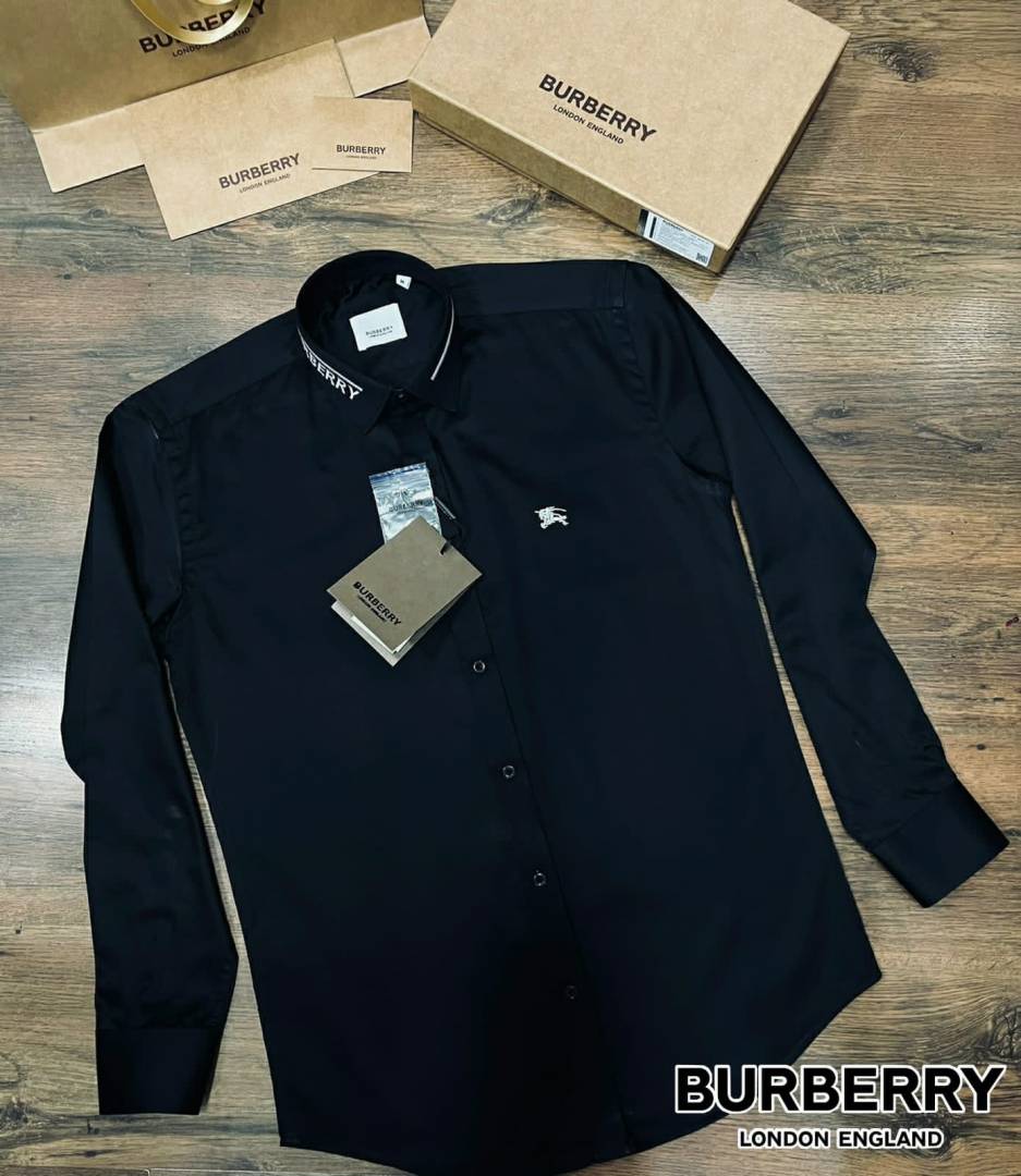 Burberr y Black Premium Shirt With Brand Box Packing and Carry Bag F174-BL