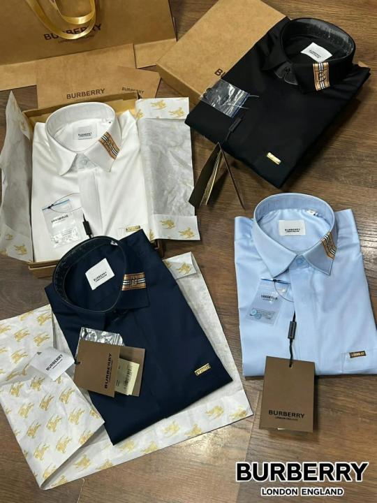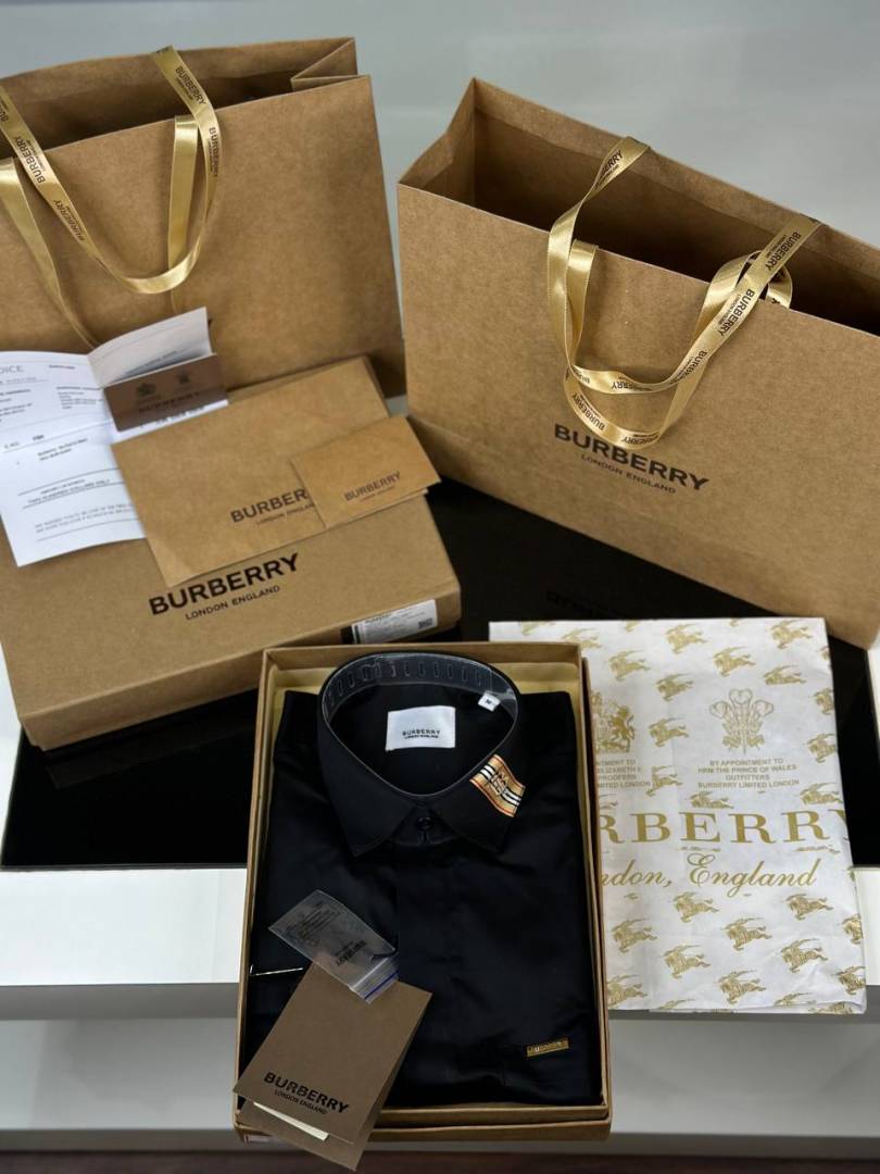 Burberr y Black Premium Shirt With Brand Box Packing and Carry Bag F174-BL