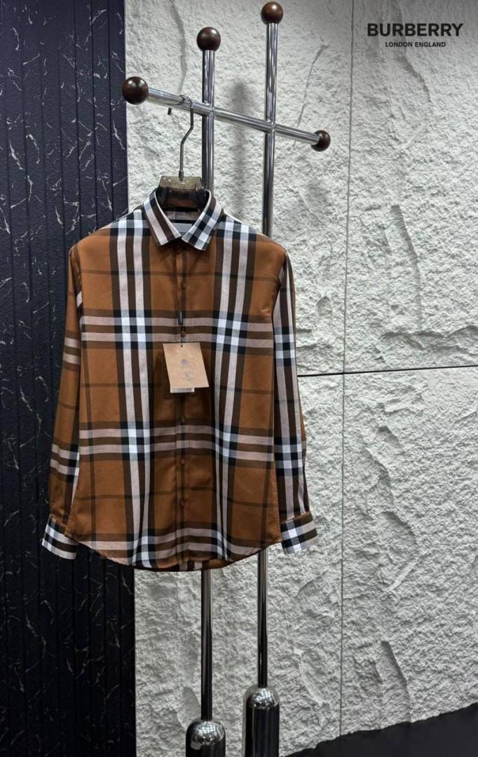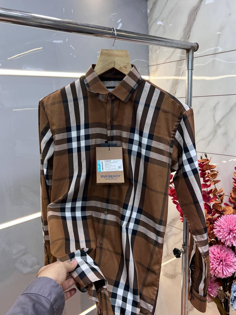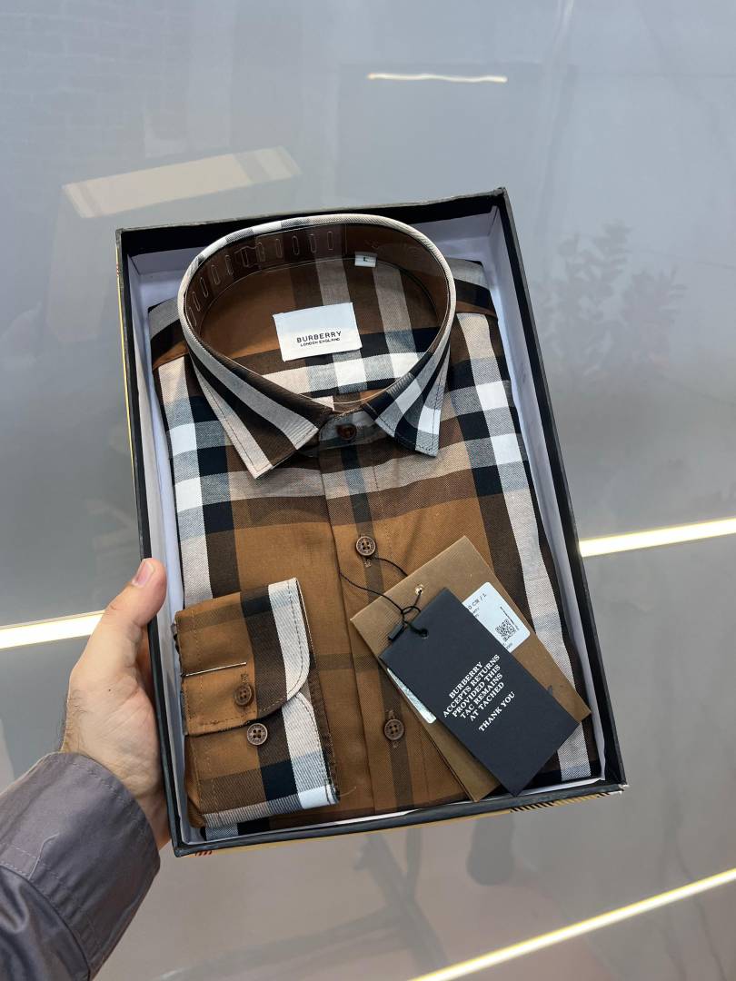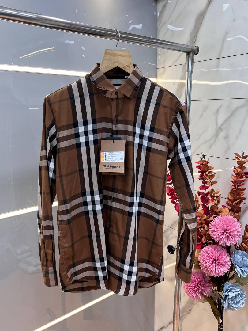 Burberr y Brown Black Line Premium mium Checks 100% Giza Cotton Fabric Shirt With custom Branded Button Tagging And Brand Packing 3329