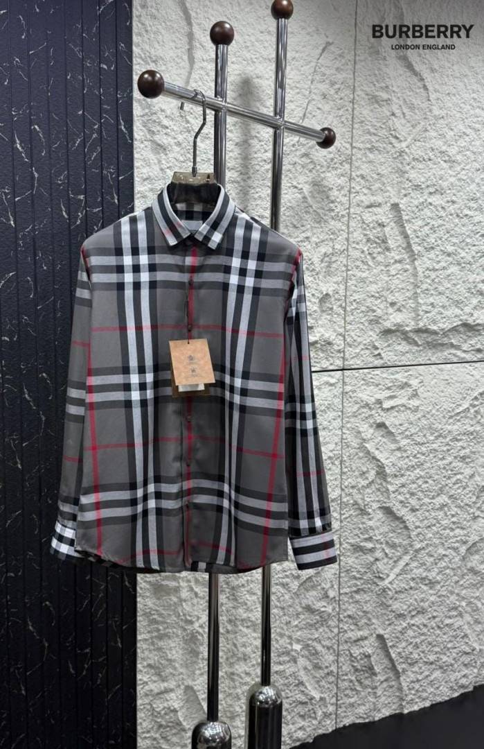 Burberr y Grey Premium Checks 100% Giza Cotton Fabric Shirt With custom Branded Button Tagging And Brand Packing 3333