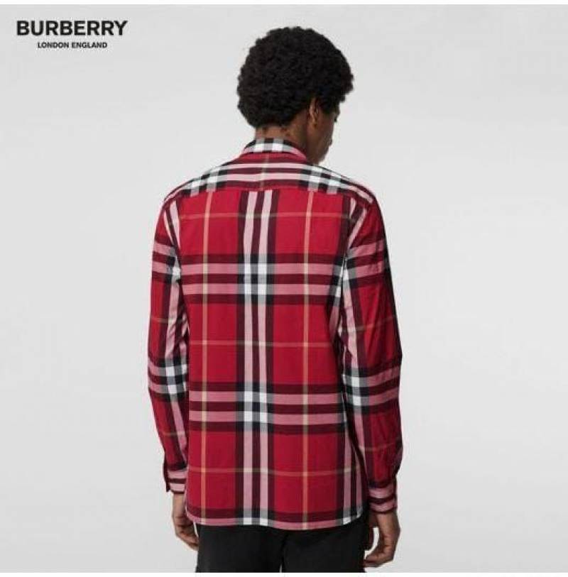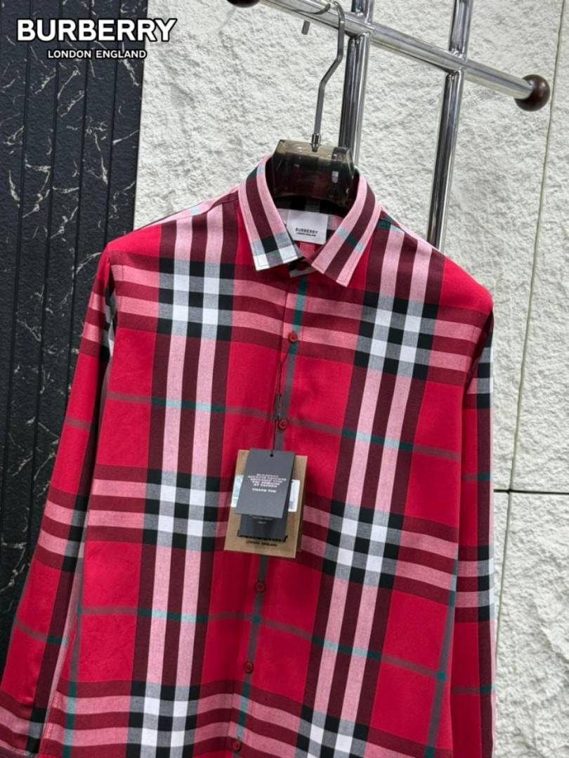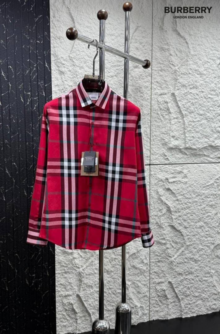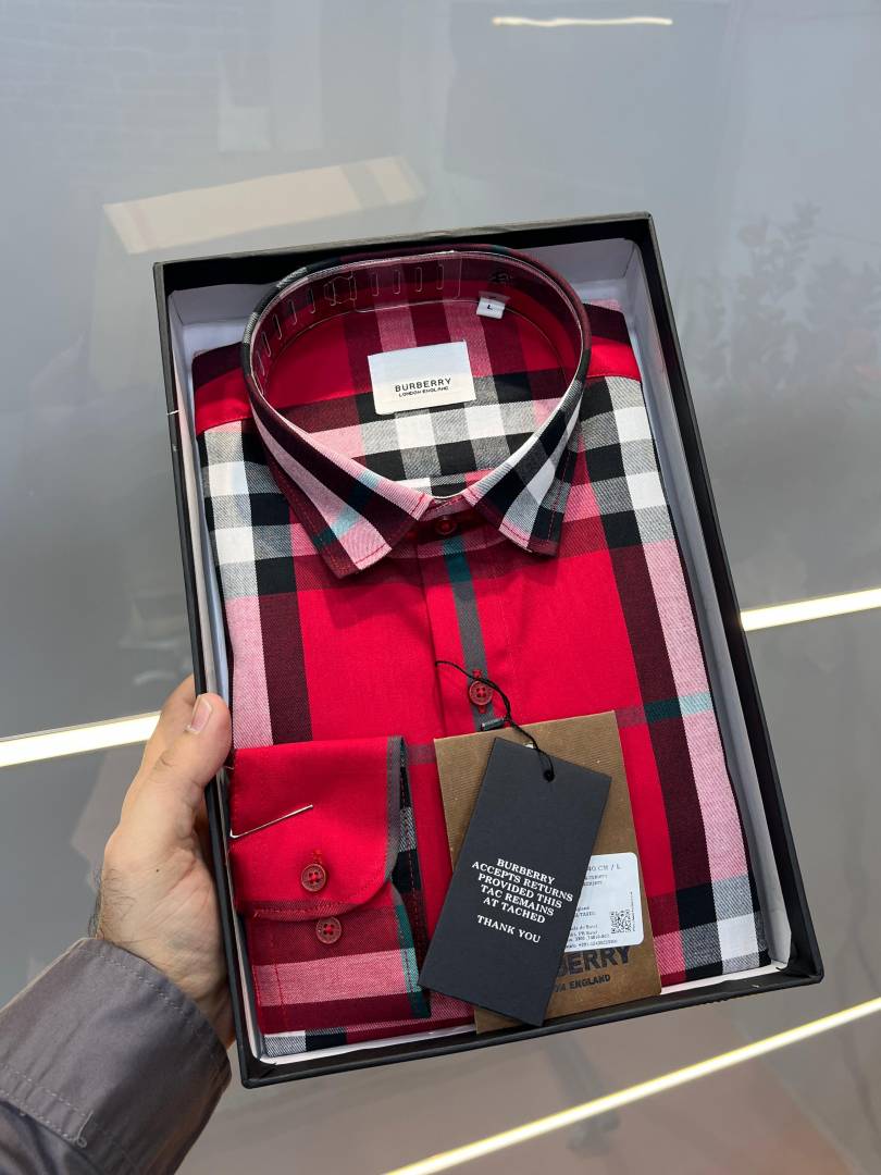 Burberr y Red Premium Checks 100% Giza Cotton Fabric Shirt With custom Branded Button Tagging And Brand Packing 3331