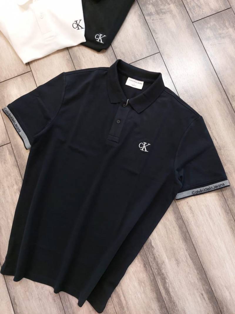 Calvin Klei n Black Premium Cotton Pique fabric Polo Tshirt with Sleeves Design and Embroidered Logo 3648