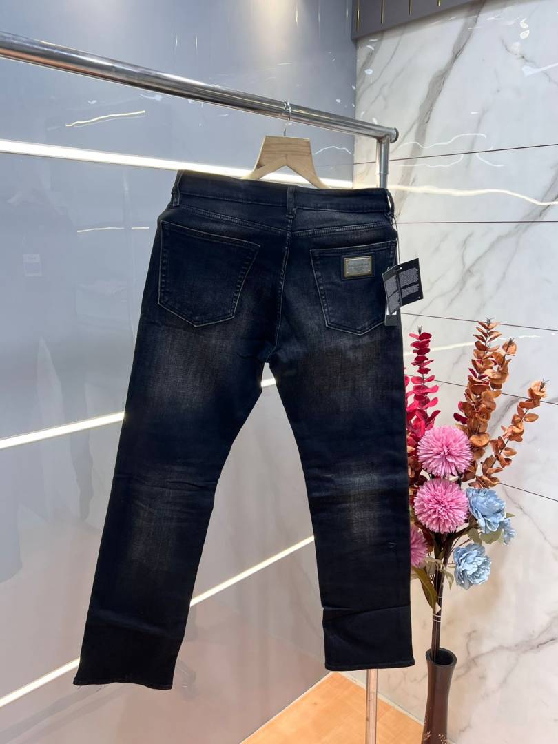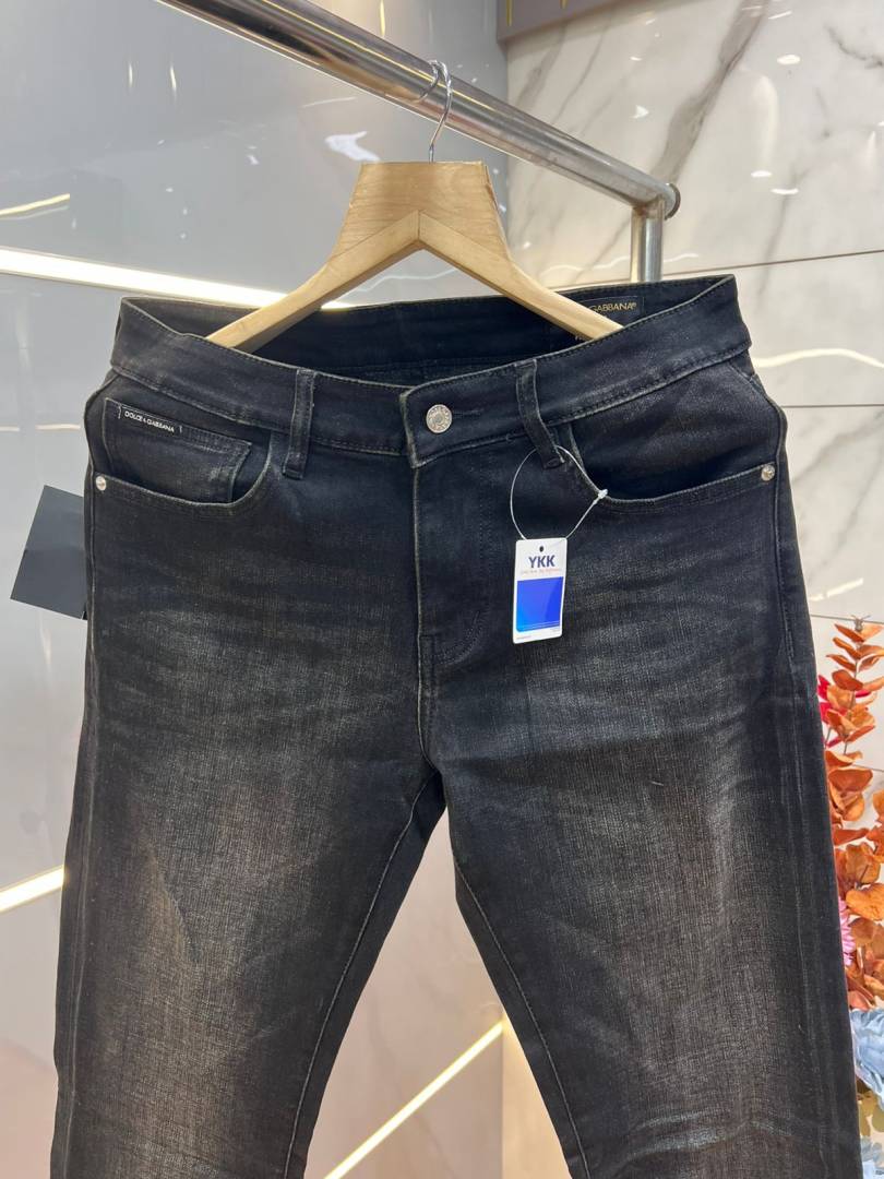 Dolce and Gabbana Black Shade Premium Imported Stretchable Lycra Fabric Straight Fit Denim with Metal Logo 3660