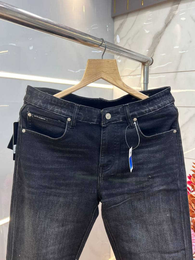 Dolce and Gabbana Black Shade Premium Imported Stretchable Lycra Fabric Straight Fit Denim with Metal Logo 3666