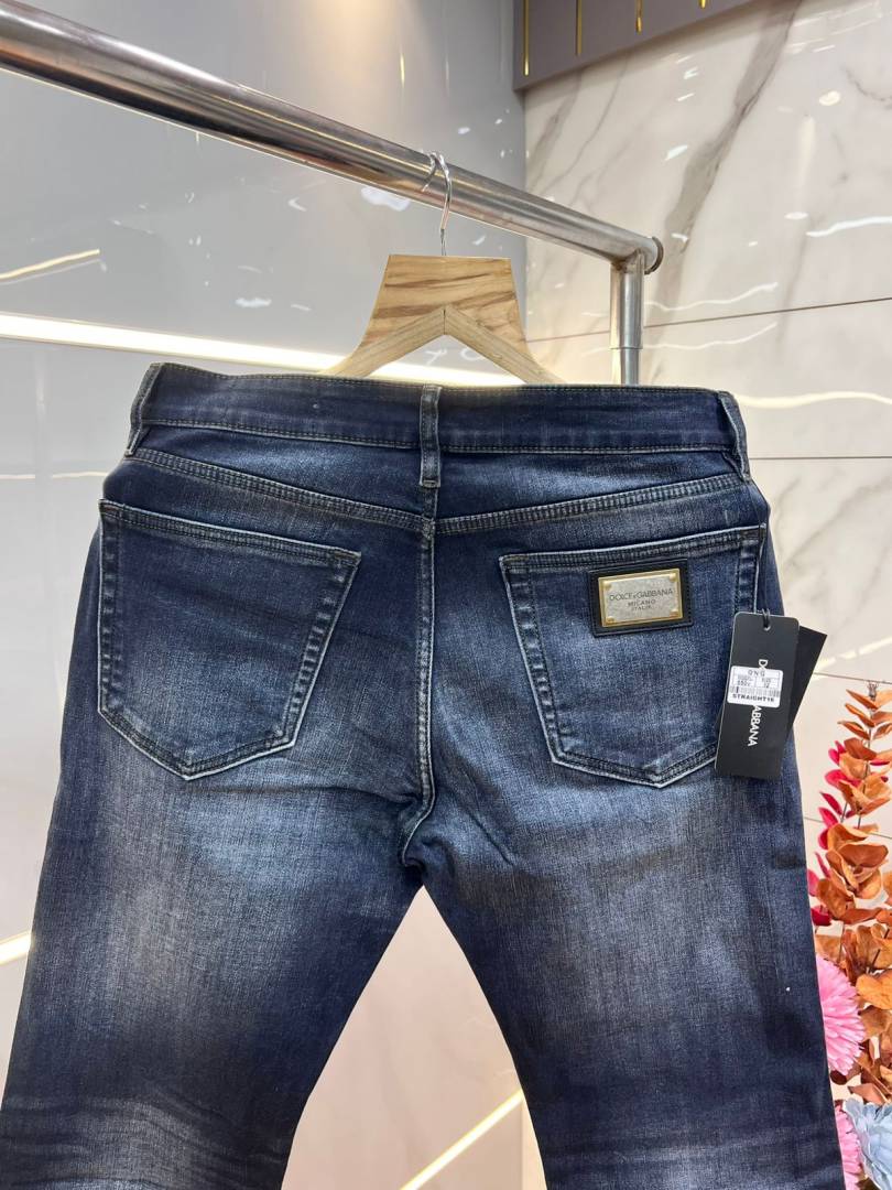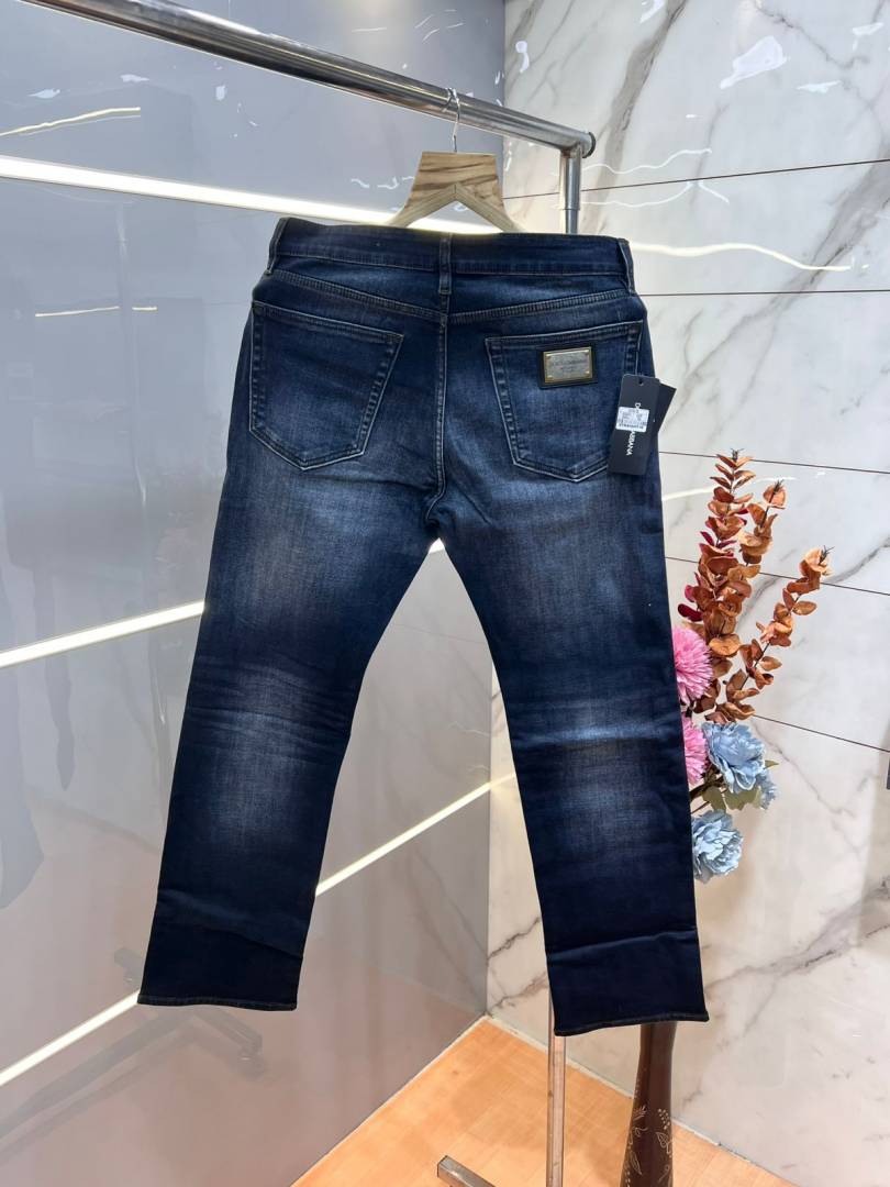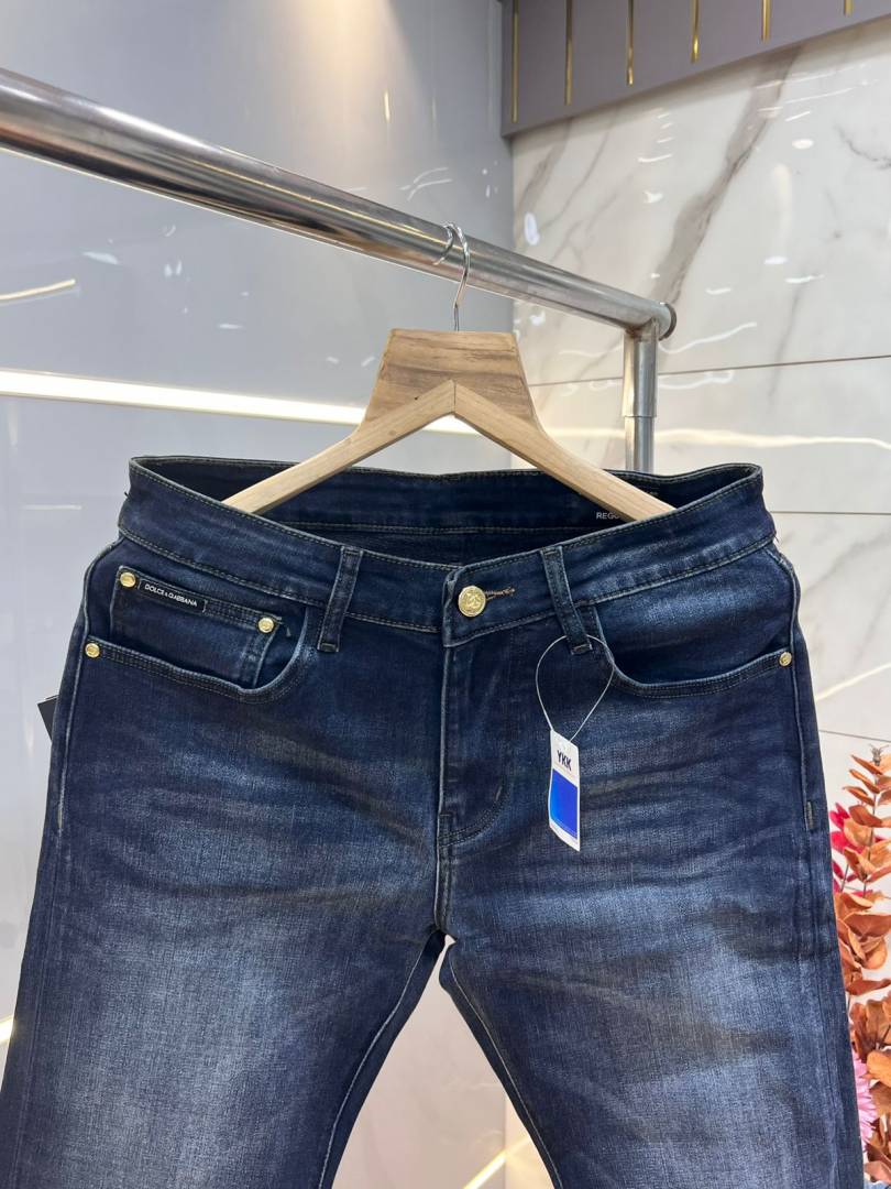 Dolce and Gabbana Blue Shade Premium Imported Stretchable Lycra Fabric Straight Fit Denim with Metal Logo 3661