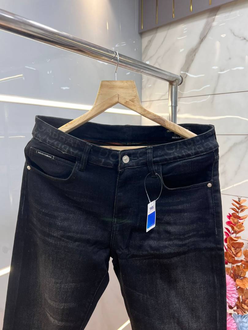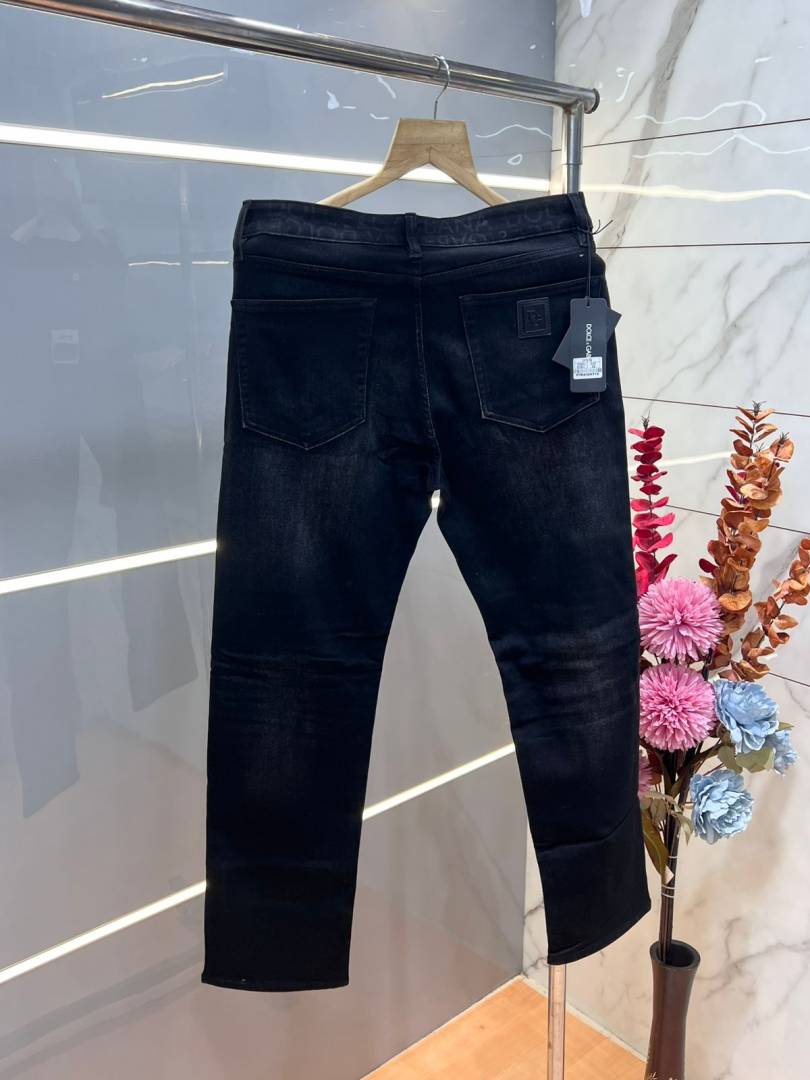 Dolce and Gabbana Black Shade Premium Imported Stretchable Lycra Fabric Straight Fit Denim with Metal Logo 3660