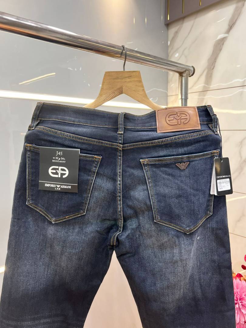 Emporio Arman i Blue Shade Premium Imported Stretchable Lycra Fabric Straight Fit Denim with Metal Logo 3659