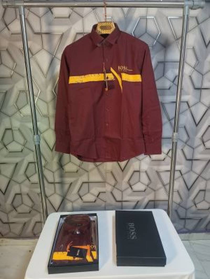 HUGO_BOSS_MAROON_LOGO_PRINT_PREMIUM_CLASSIC_SHIRT_WITH_BOX_PACKING_(1936)