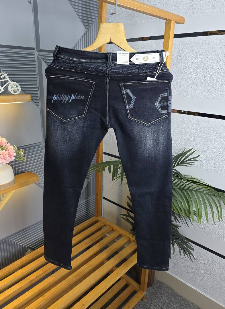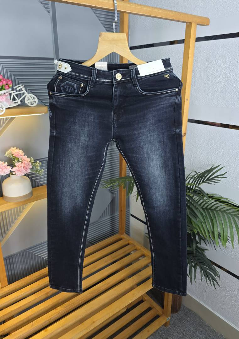Dolce and Gabbana Black Shade Premium Imported Stretchable Lycra Fabric Straight Fit Denim with Metal Logo 3660
