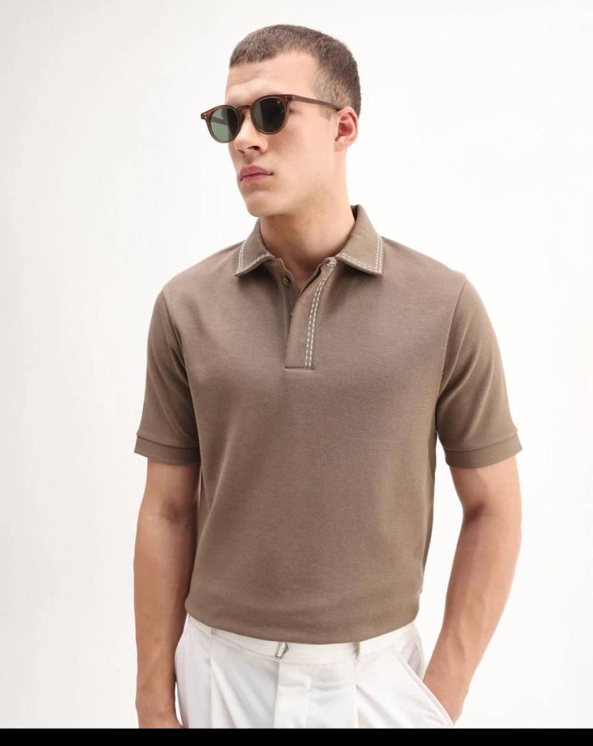 Calvin Klei n Brown Premium Cotton Pique fabric Polo Tshirt with Collar Design and Embroidered Logo 3643
